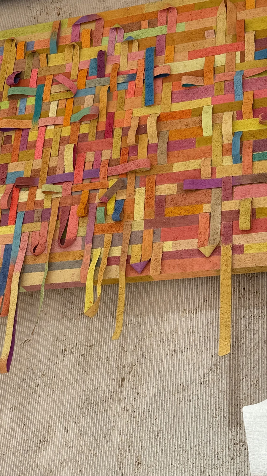 As FENDI states, ”Ribbons of painted canvas are interlaced by hand, forming a surface where colour, texture, and depth are embedded in the act of weaving. The painting resists narrative and illusion, yet in its construction reveals a quiet density of labour, of touch, and of a logic that is built over time. It is not a depiction of connection, but a form that enacts it. It is a painting that is made, layered, assembled, and slowly woven into being, aligning with FENDI’s enduring values of innovation and refined artistry“.